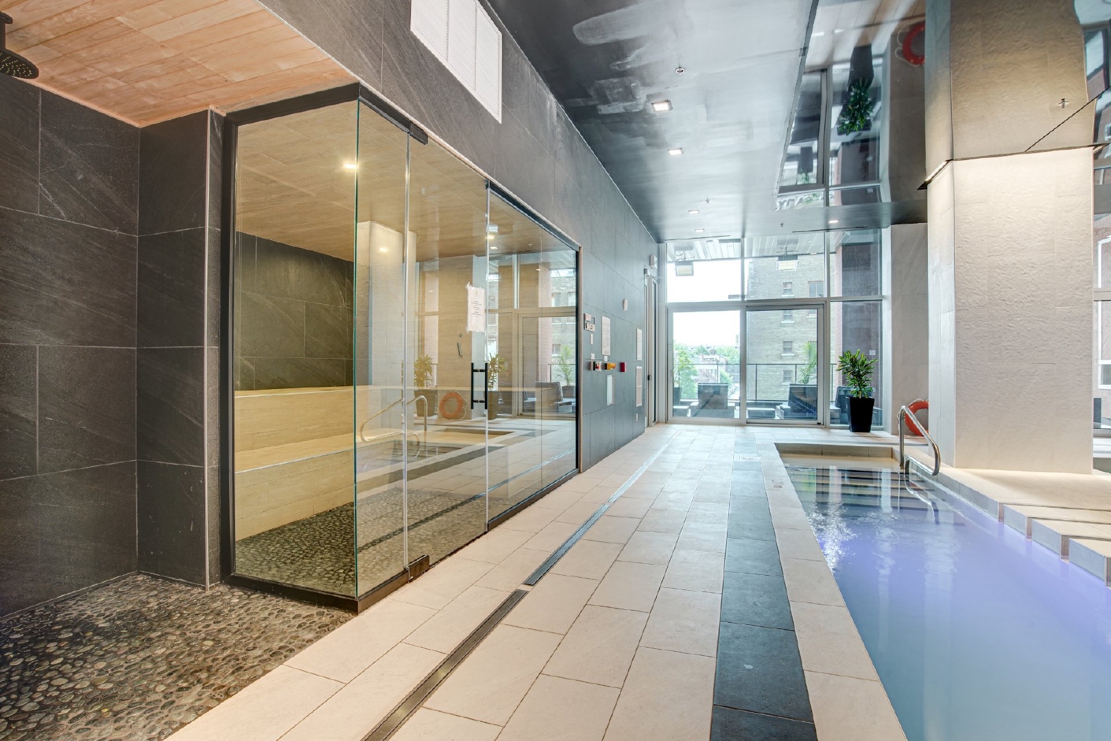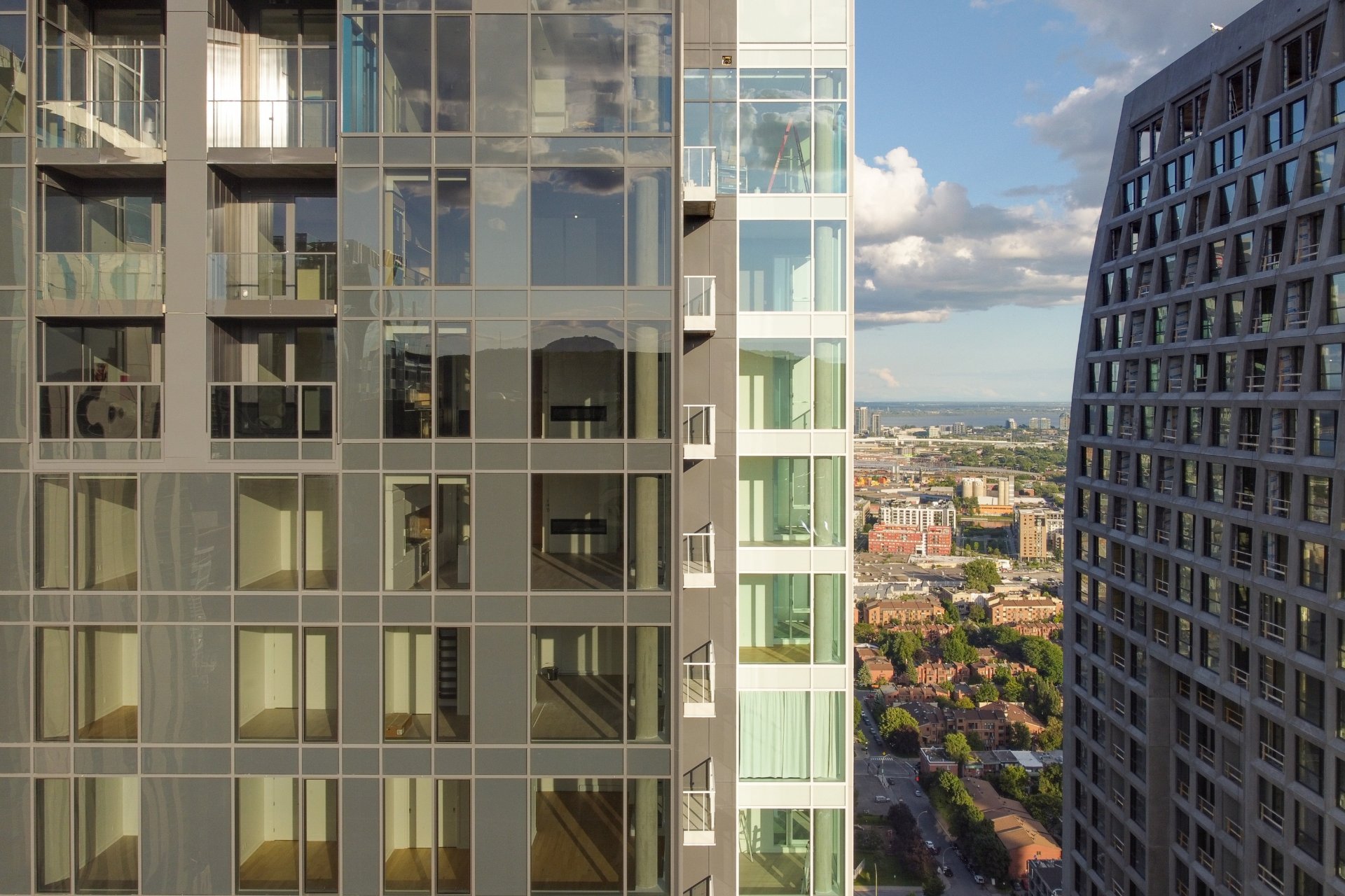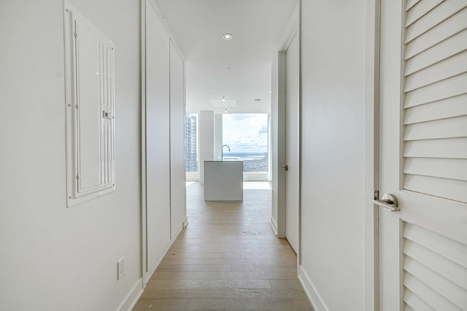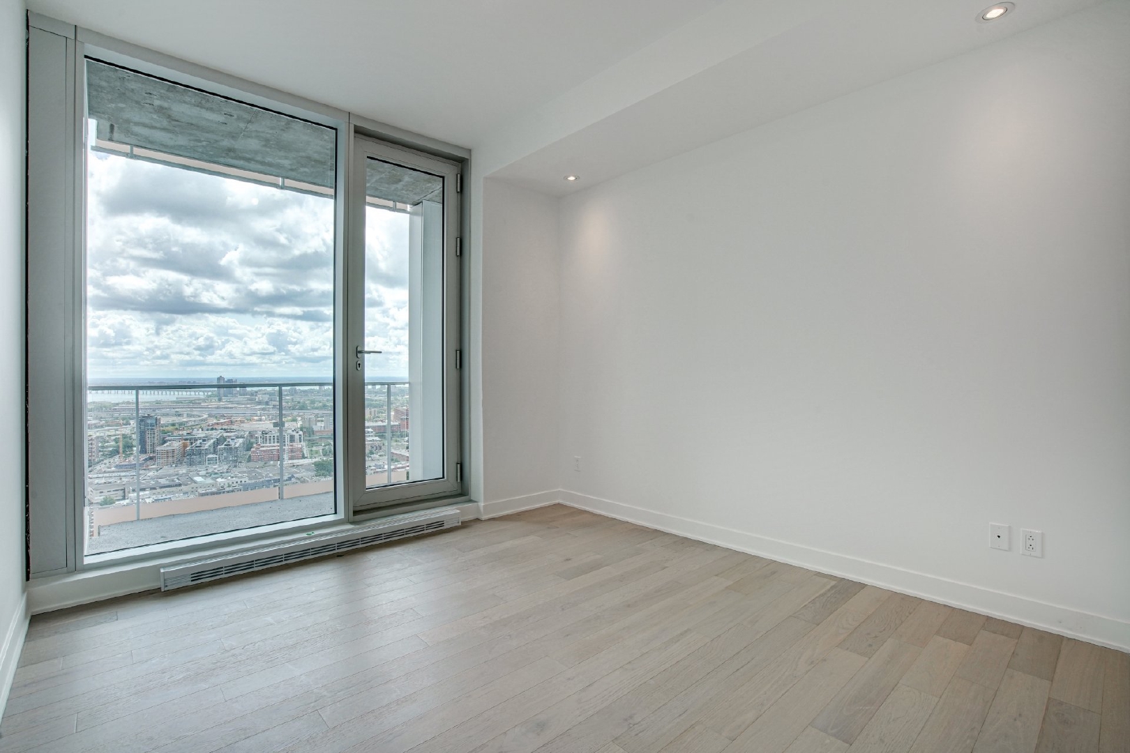 Welcome to your dream home located on the 37th floor, offering an unrivalled living experience with breathtaking views of the St. Lawrence River. This impressive corner unit, flooded with natural light due to its South-East orientation, provides a unique opportunity for refined living.Step into a spacious 1085 sq. ft. sanctuary characterized by both modern and timeless elegance, where lofty ceilings and floor-to-ceiling windows frame expansive vistas that extend beyond the horizon. Featuring 2 bedrooms and 2 bathrooms, this generous retreat ensures comfort and seclusion for you and your loved ones.The unit features two private balconies, each offering a distinctive perspective of the cityscape and the river. Revel in the exceptional finishes that adorn every corner of this residence, from the integrated kitchen appliances and wine cellar to the exquisite marble countertop and matching backsplash.Residents of the building enjoy access to a wide range of common spaces. Completed in 2023, this newly constructed project boasts an indoor pool, hot tub, and dry sauna, providing a spa-like retreat within the confines of your own home. Find your inner balance in the upscale fitness center, unwind in the co-owner’s lounge, or host unforgettable gatherings in the wine tasting room. The terrace provides a peaceful outdoor oasis, while the business center caters to your professional requirements.This is more than just a home; it represents a lifestyle elevated by exquisite design, unmatched amenities, and a panoramic view that changes with the ebb and flow of the river.Rooms