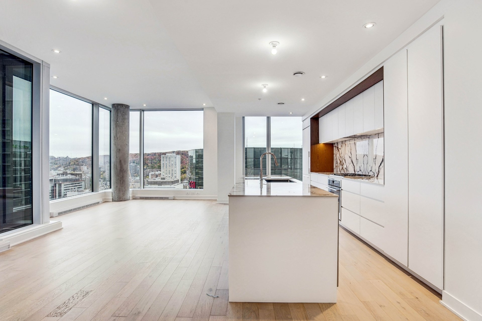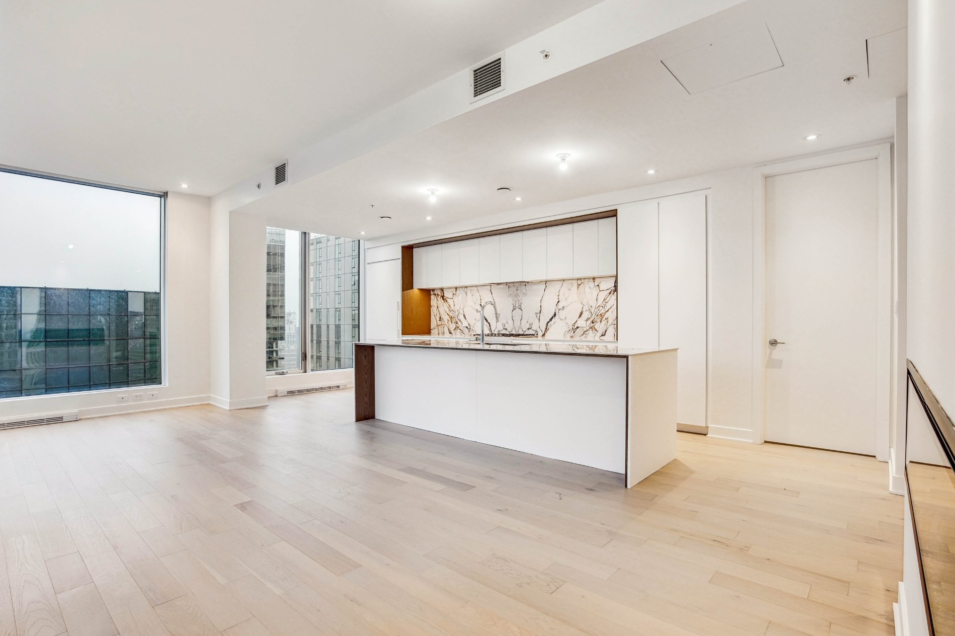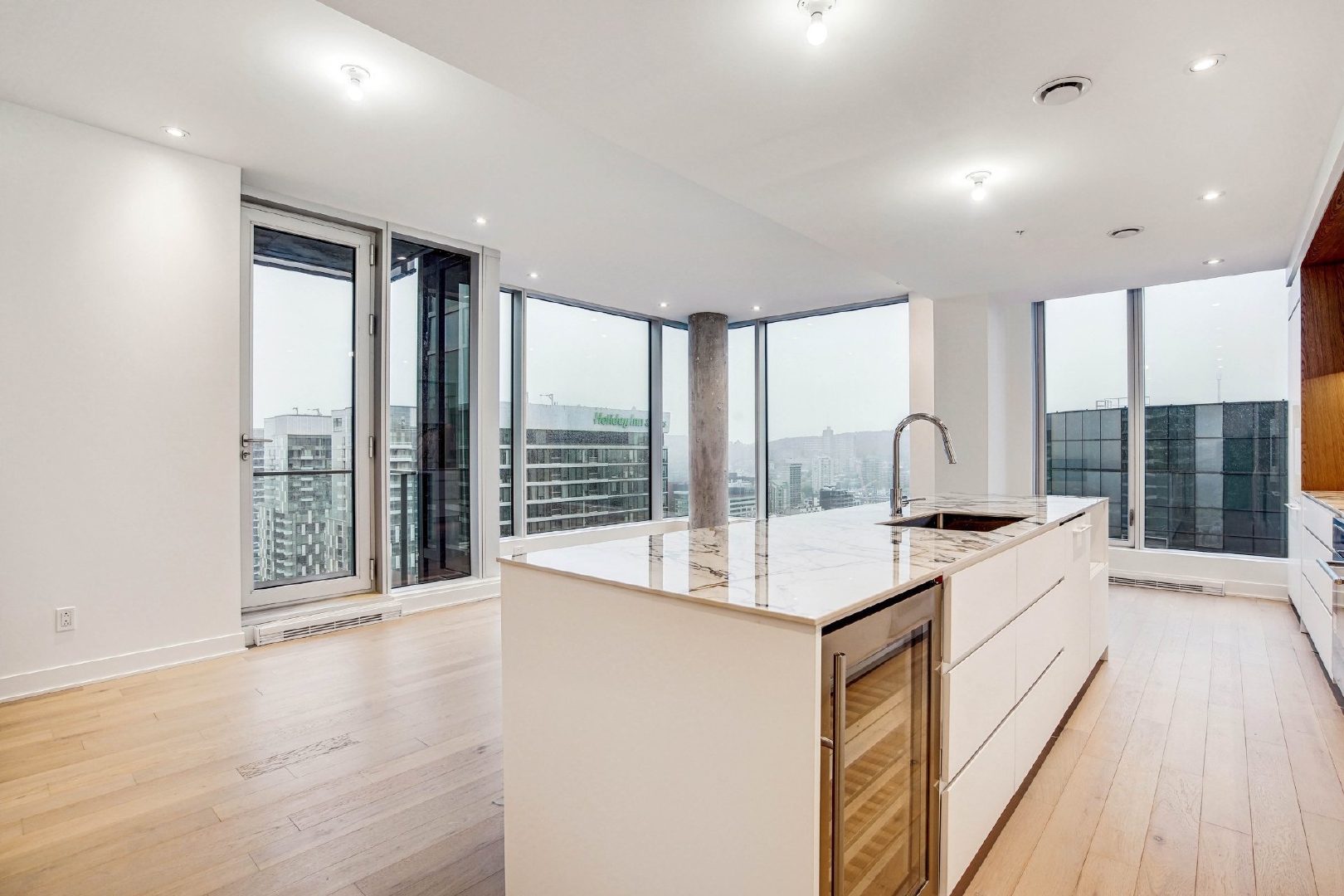 Welcome to your dream residence perched high on the 38th floor, offering an unmatched living experience overlooking downtown. This stunning corner unit, flooded with natural light from its oversized windows, presents a rare opportunity for refined living.Step into an expansive 1360 sq. ft. haven of modern and timeless elegance, where high ceilings and floor-to-ceiling windows frame stunning city views. With 3 bedrooms and 2 bathrooms, this spacious retreat ensures comfort and privacy for you and your loved ones.The unit boasts two private balconies, each providing a unique perspective of the cityscape. Revel in the exceptional finishes that adorn every inch of this residence, from the kitchen’s integrated appliances and wine cellar to the exquisite marble countertop and backsplash.The building’s residents benefits from a large variety of common spaces. Completed in 2023, this new construction boasts an indoor pool, hot tub, and dry sauna for a spa-like retreat within your own home. Find your inner balance in the high-end exercise room, unwind in the co-owner’s lounge, or host memorable gatherings in the wine tasting room. The terrasse offers a serene outdoor escape, while the business center caters to your professional needs.This is more than a property; it’s a lifestyle elevated by exquisite design and unparalleled amenities.Rooms
