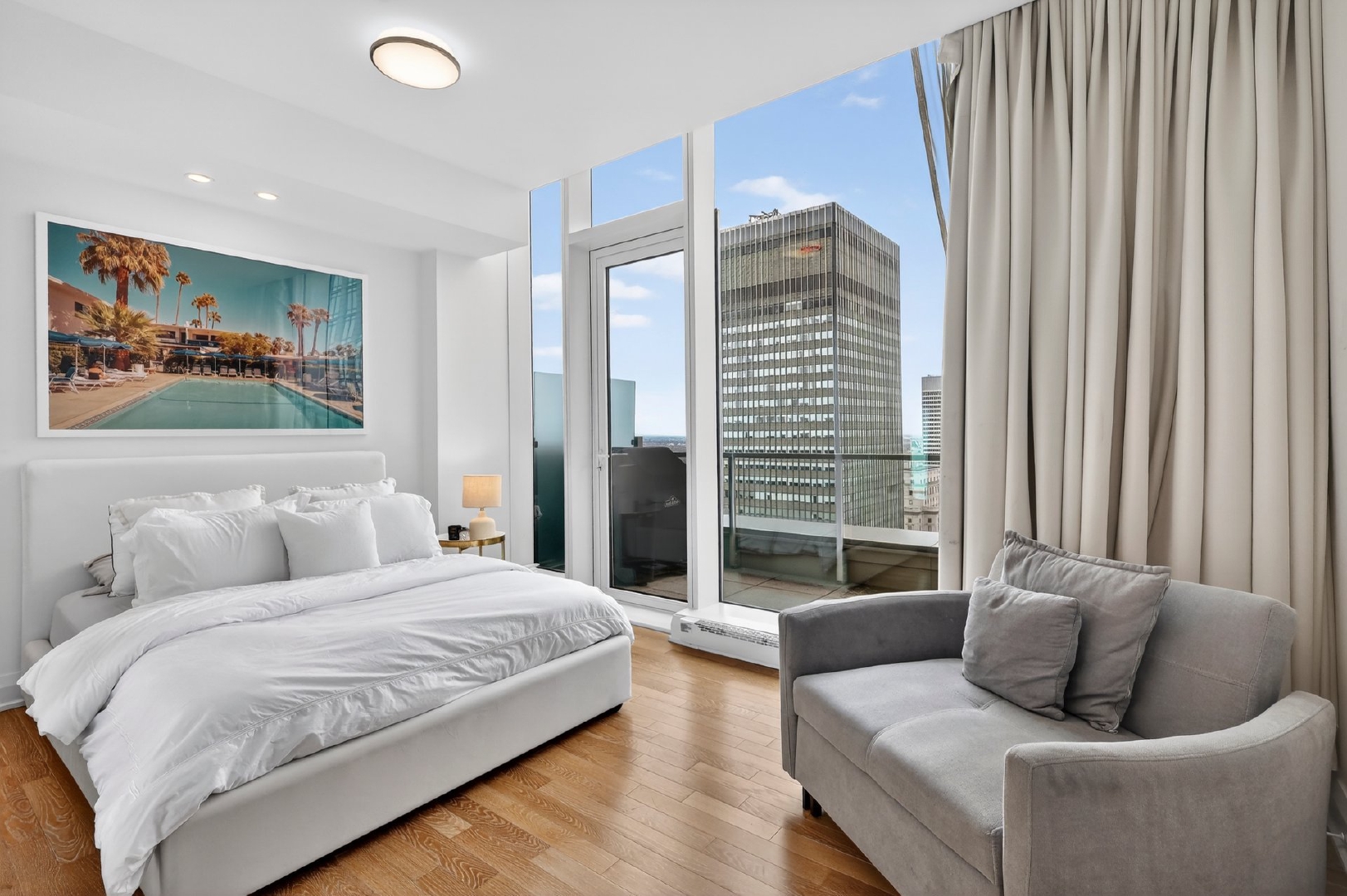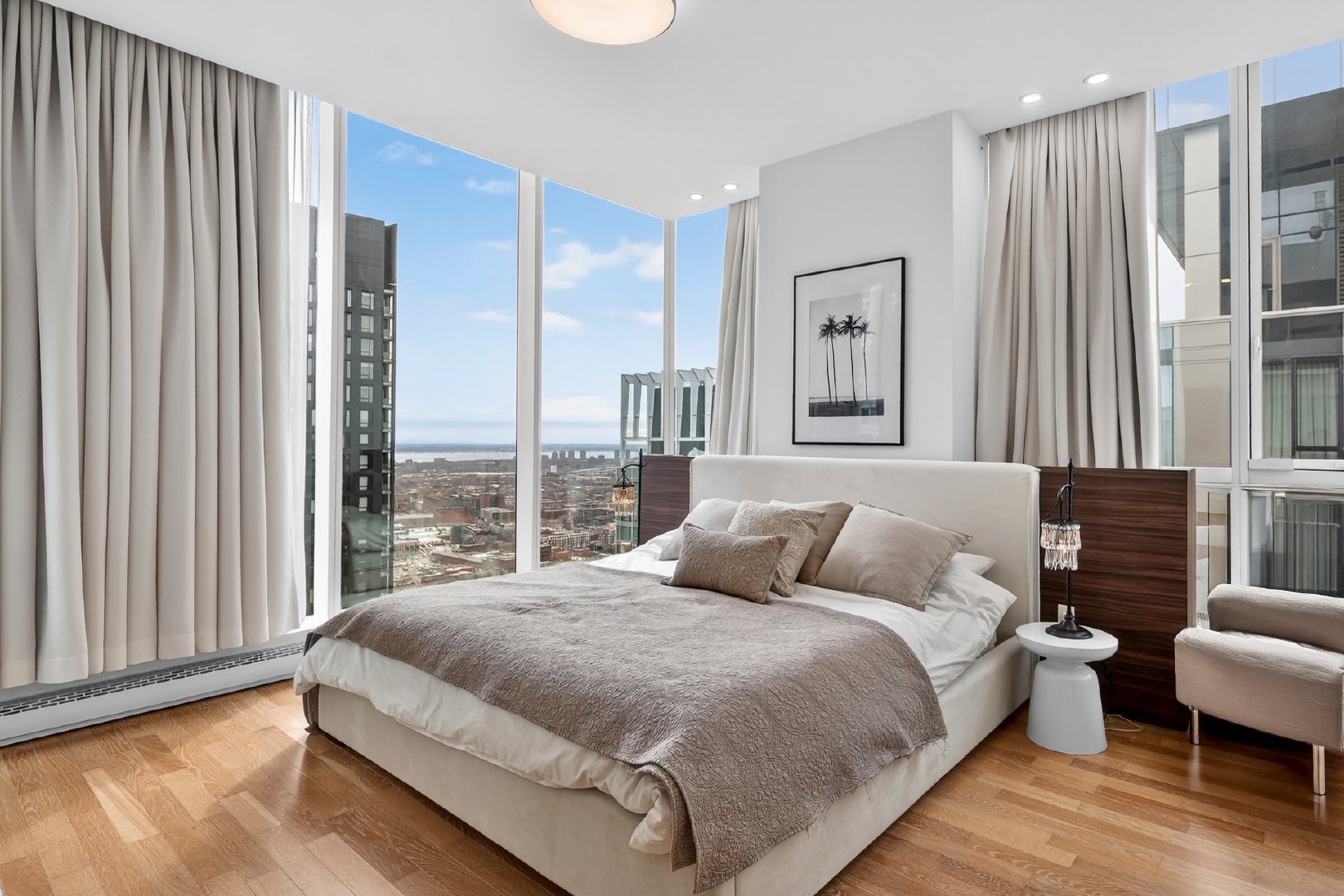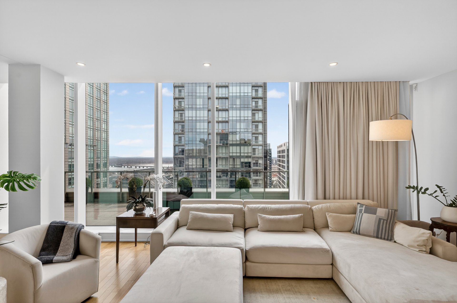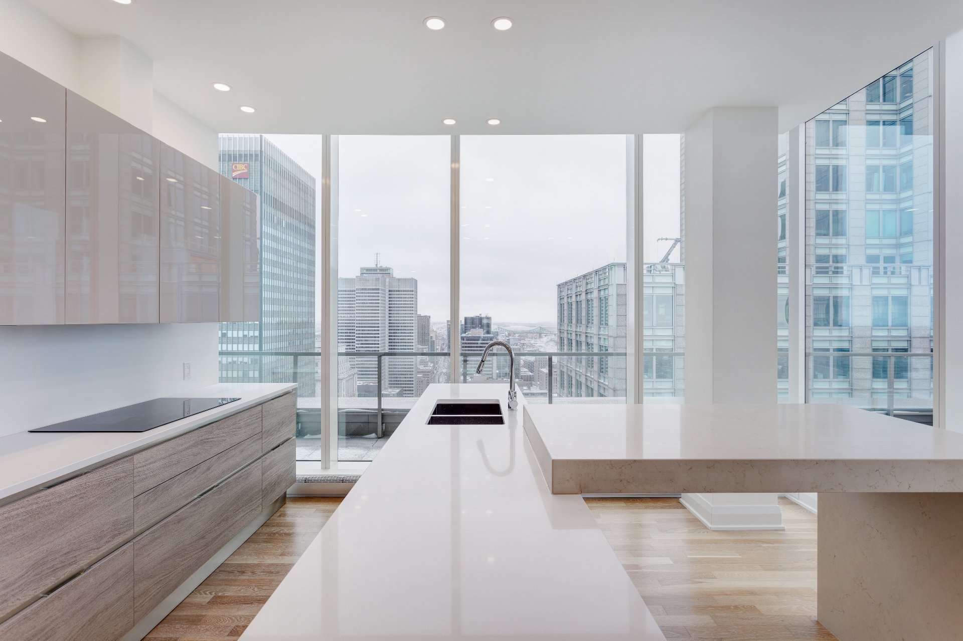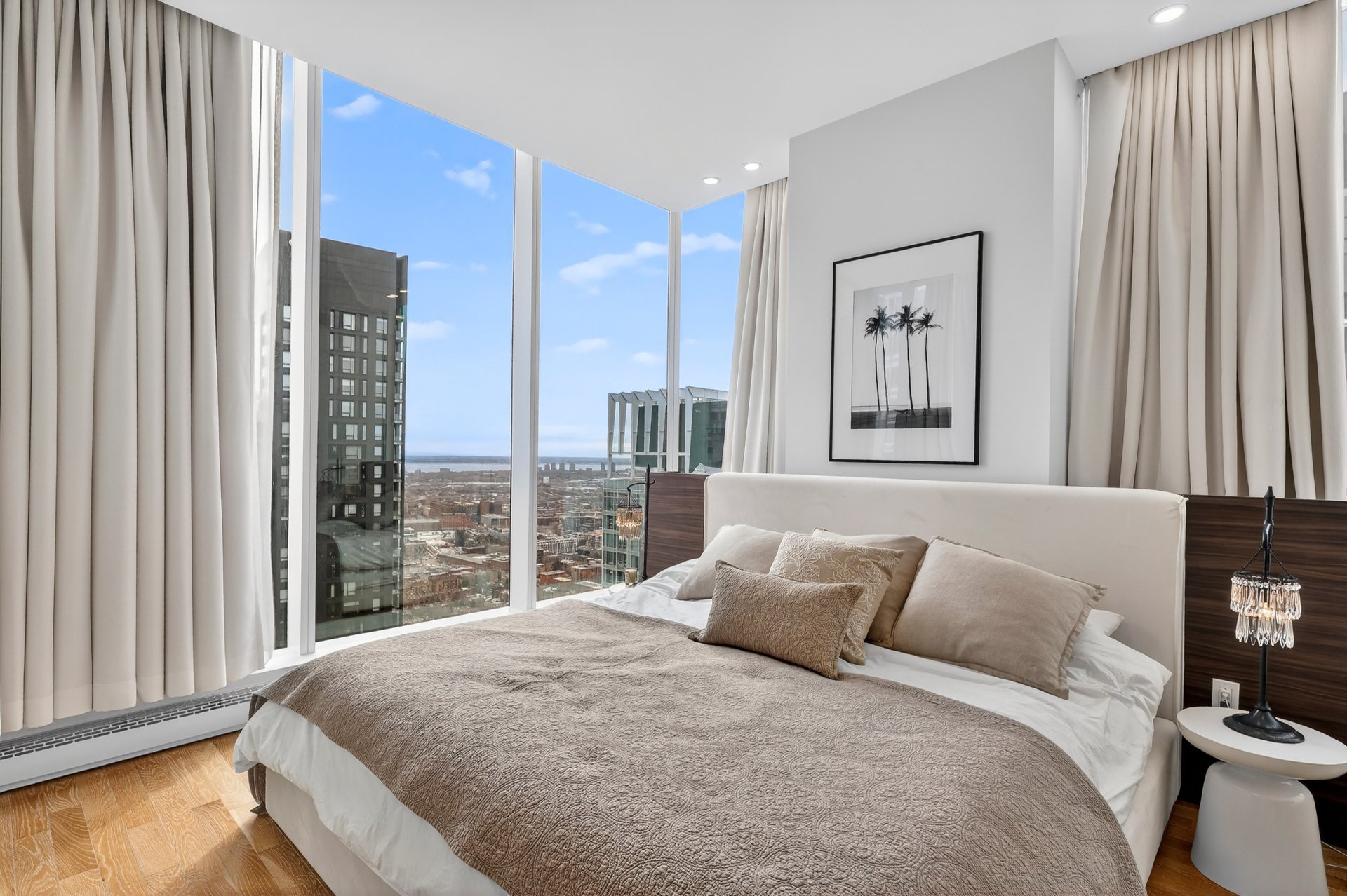 Located on the 40th floor of the prestigious Roccabella, this penthouse residence offers an exceptional urban living experience in the heart of downtown Montreal. Positioned on two corners and benefiting from a southern exposure, the unit is bathed in natural light throughout the day and offers spectacular panoramic views of downtown and the river.Upon entry, the high ceilings and expansive floor-to-ceiling windows highlight the impressive scale of the living spaces. The living room and dining area integrate seamlessly within an elegant open-concept layout, ideal for entertaining or enjoying the urban panorama.The contemporary kitchen stands out with its clean lines, large central island, and natural integration with the living areas, creating an environment that is both functional and refined.The primary suite offers a true private retreat, featuring a large walk-in closet and an ensuite bathroom with separate bathtub and shower. Two additional bedrooms complete the residence, including one with its own ensuite bathroom, offering comfort and privacy for family members or guests.The unit also includes a third full bathroom, a powder room, and a separate laundry room.Outside, an expansive wraparound terrace accessible from several rooms allows you to fully enjoy the spectacular views and the unique urban setting this property offers.The property is sold with three garage spaces and one storage unit.Roccabella is a prestigious building offering high-quality services and amenities:24⁄7 doorman and securityIndoor swimming poolDry saunaJacuzziTwo-storey fitness centerShared terrace on the 3rd floor with BBQ and lounge areasVisitor parkingIdeally located in the heart of downtown, close to restaurants, shops, public transit, and all services.Rooms
