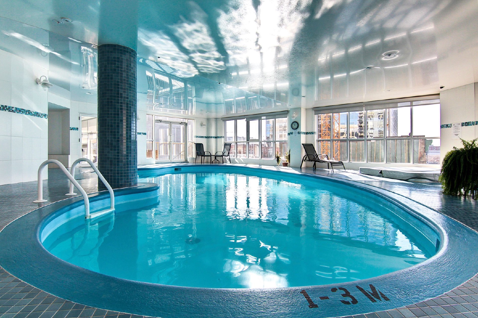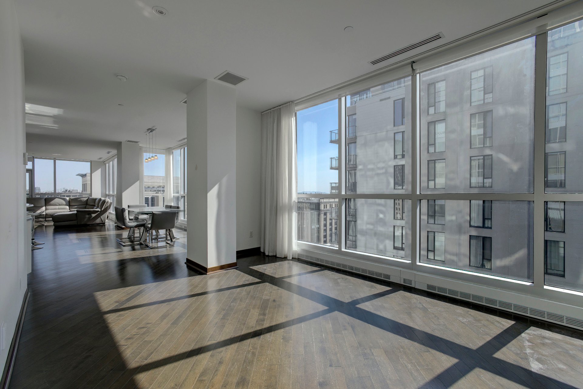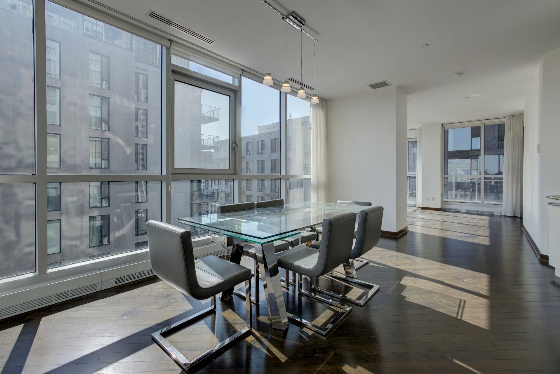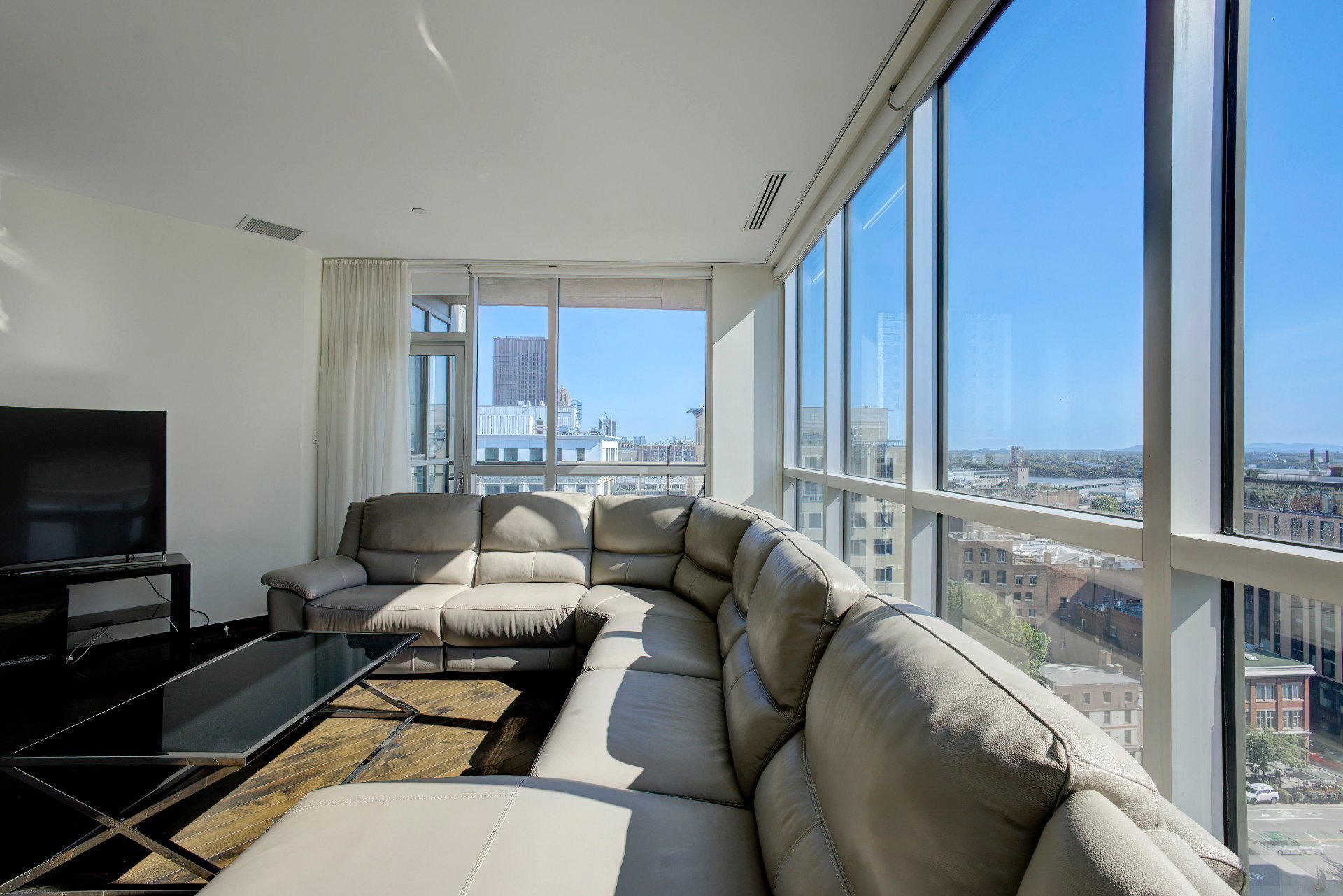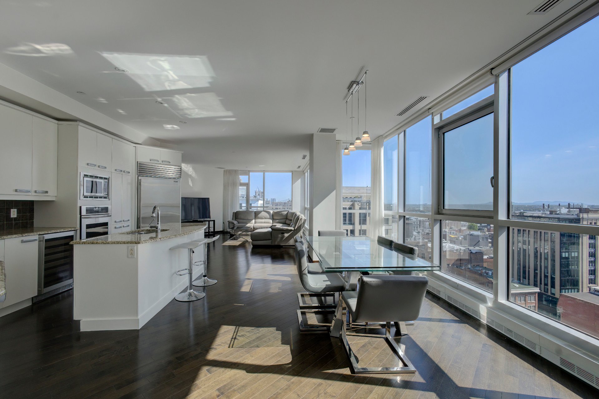 Discover luxury living at its finest in this 2-bedroom, 2-bathroom condo located in the heart of Montreal’s Quartier International. Positioned as a corner unit with a sweeping 180-degree view, this rare gem is one of only two units on the floor, offering you unmatched privacy and tranquility.Step into an expansive living space designed with comfort and elegance in mind. The large living room flows effortlessly into a spacious dining area, making it ideal for entertaining or enjoying quiet nights at home. A versatile open office area complements the space, perfect for those who work from home or need extra room for hobbies.Oversized windows throughout the condo flood the space with natural light. The two large balconies offer unobstructed views of the historic Old Port and the stunning St. Lawrence River. With maximum sunlight pouring in from all angles, this condo feels airy and bright all year round.Residents of this established, well-maintained building enjoy access to a gym and a pool, perfect for maintaining an active lifestyle without leaving the comfort of your home. The building’s reputation for stability and a steady clientele ensures a peaceful and secure living environment.Located in one of the most sought-after neighborhoods in the city, this condo offers the perfect blend of urban living and historic charm. Situated at the junction of downtown and Old Montreal, you’ll be steps away from world-class restaurants, charming boutiques, and a variety of cultural and recreational activities. Whether you’re exploring the vibrant streets of downtown or enjoying the picturesque beauty of the Old Port, this location offers the best of both worlds.Rooms