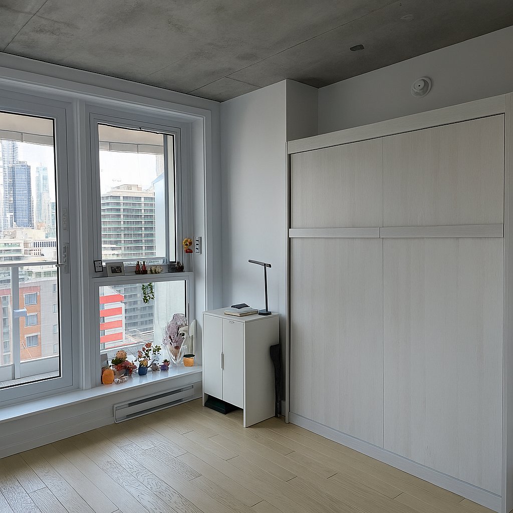 Table, deux chaises, télévision, lit escamotableCaractéristiques