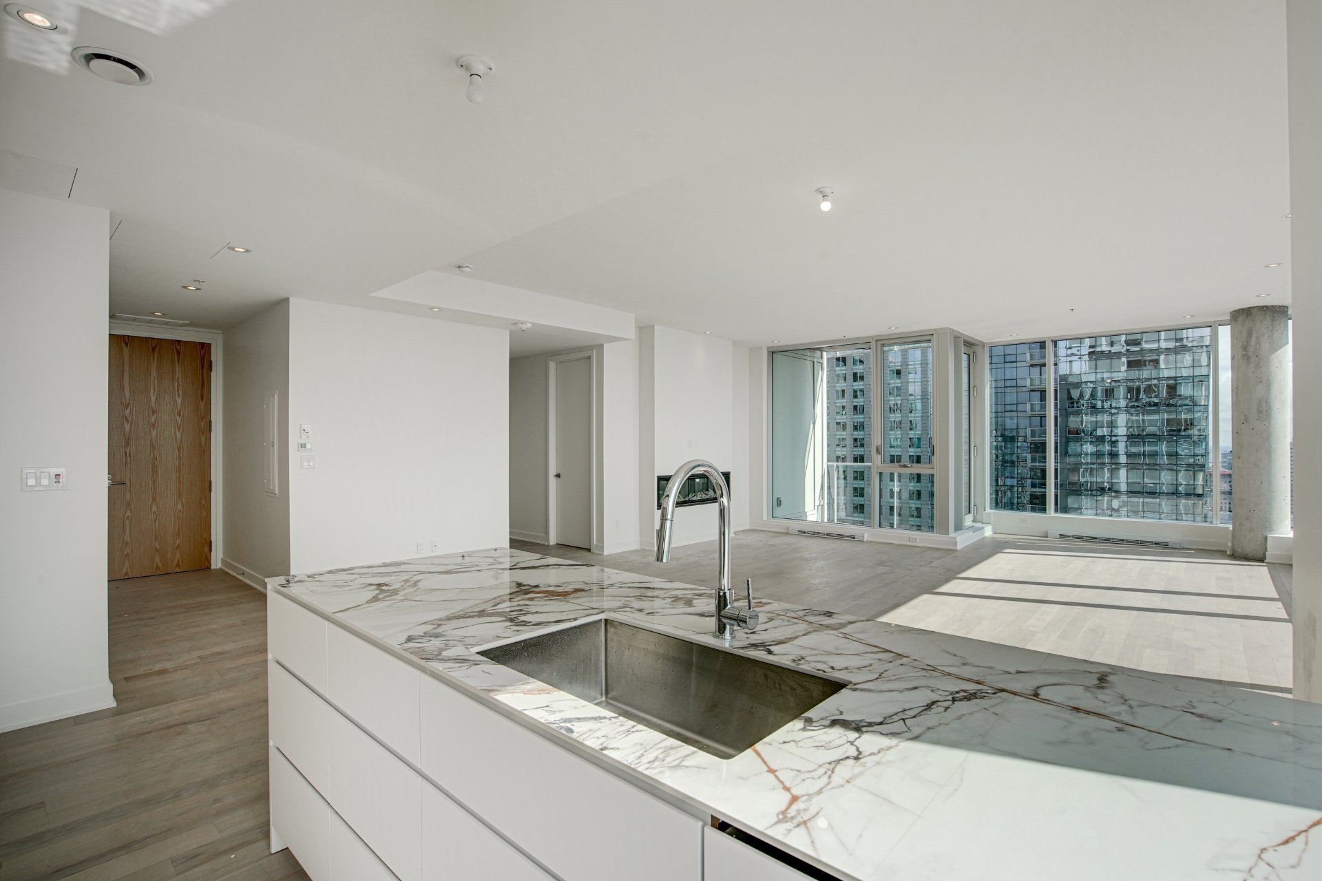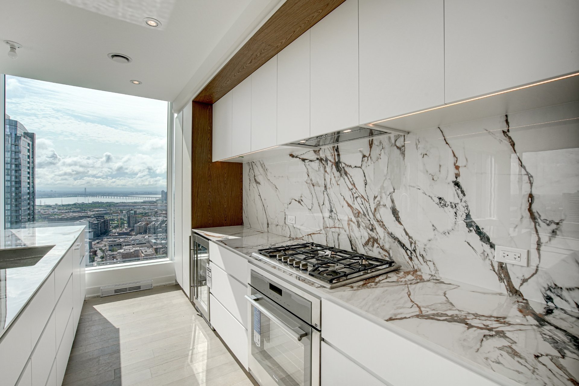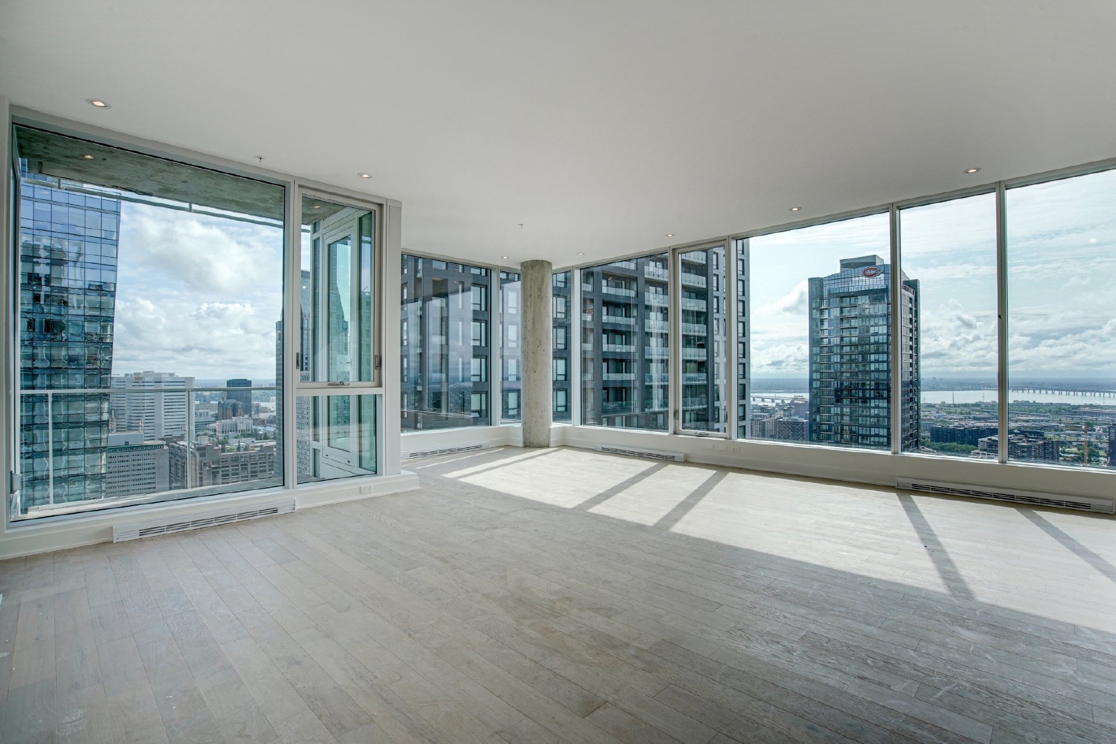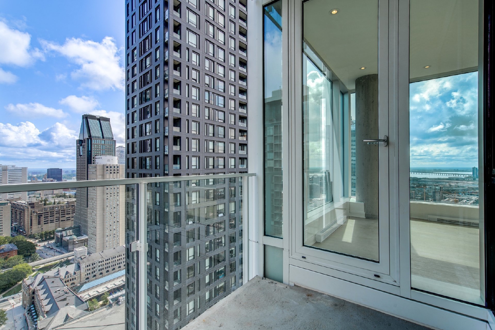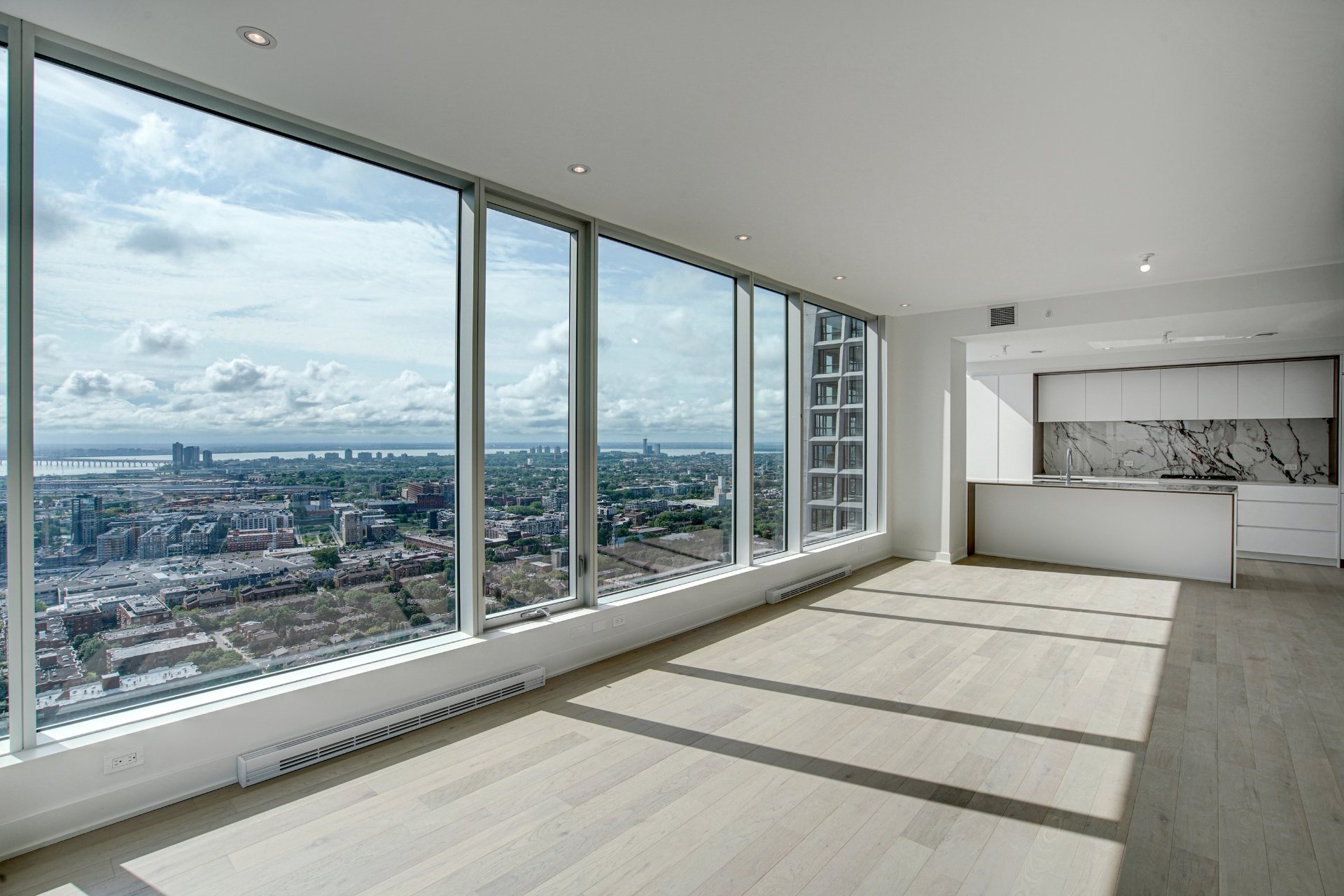 Bienvenue dans votre résidence de rêve perchée au 38e étage, offrant une expérience de vie inégalée avec vue sur le pittoresque fleuve Saint-Laurent. Cette magnifique unité de coin, baignée de lumière naturelle grâce à son orientation sud-est, présente une occasion rare de vivre dans un environnement raffiné.Entrez dans un havre spacieux de 1715 pieds carrés, alliant élégance moderne et intemporelle, où les hauts plafonds et les fenêtres pleine hauteur encadrent des vues panoramiques qui s’étendent au-delà de l’horizon. Avec 3 chambres à coucher et 2 salles de bains, cette retraite spacieuse garantit confort et intimité pour vous et vos proches.L’unité est dotée de trois balcons privés, offrant chacun une perspective unique sur le paysage urbain et l’eau. Appréciez les finitions exceptionnelles qui ornent chaque recoin de cette résidence, des appareils intégrés de la cuisine au magnifique comptoir en marbre et au dosseret assorti.Les résidents de l’immeuble bénéficient d’une grande variété d’espaces communs. Terminée en 2023, cette nouvelle construction comprend une piscine intérieure, un bain à remous et un sauna sec pour une retraite digne d’un spa chez vous. Profitez d’une salle d’exercice haut de gamme, détendez-vous dans le salon des copropriétaires, ou organisez des rassemblements mémorables dans la salle de dégustation de vins. La terrasse offre une évasion sereine en plein air, tandis que le centre d’affaires répond à vos besoins professionnels.Ceci est bien plus qu’une propriété ; c’est un style de vie magnifié par un design exquis, des commodités inégalées et un panorama qui évolue au rythme du fleuve.Pièces