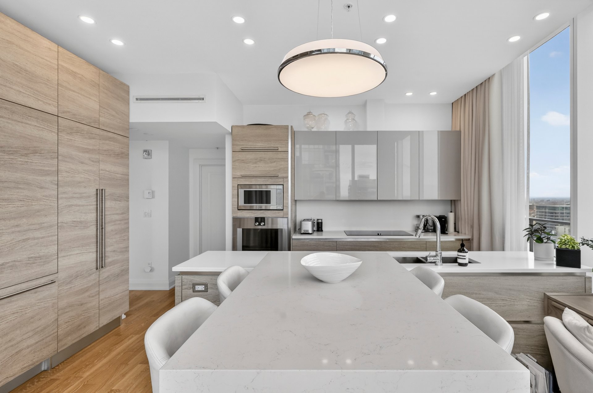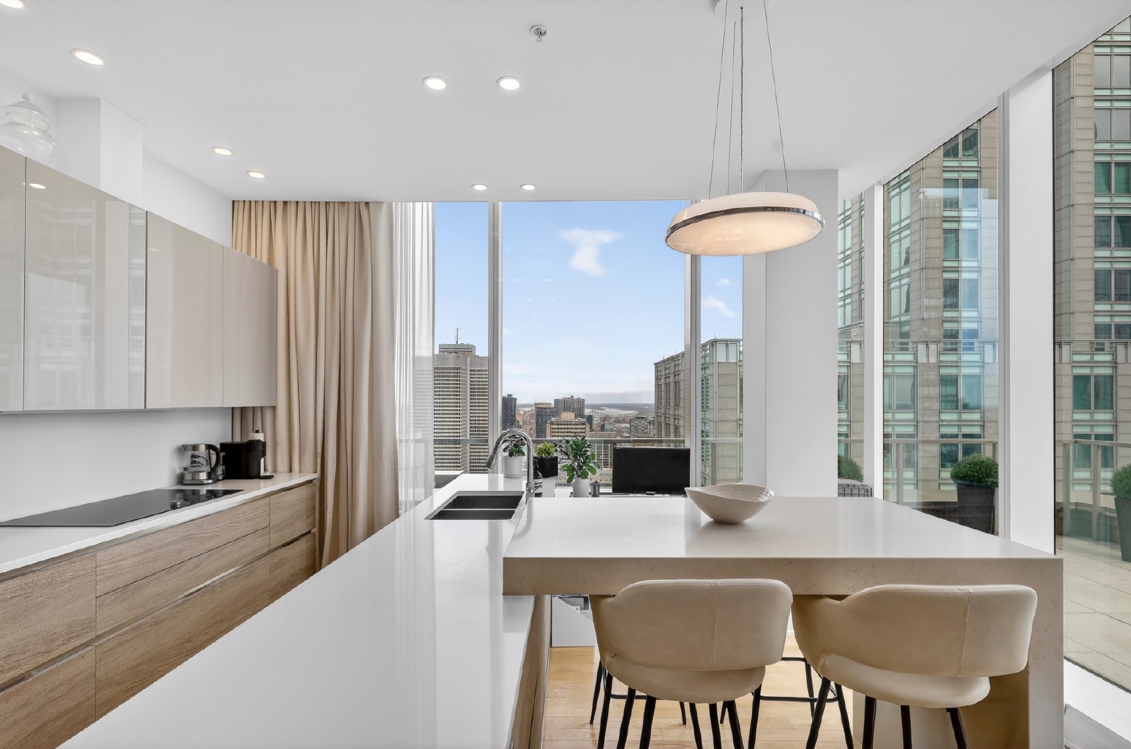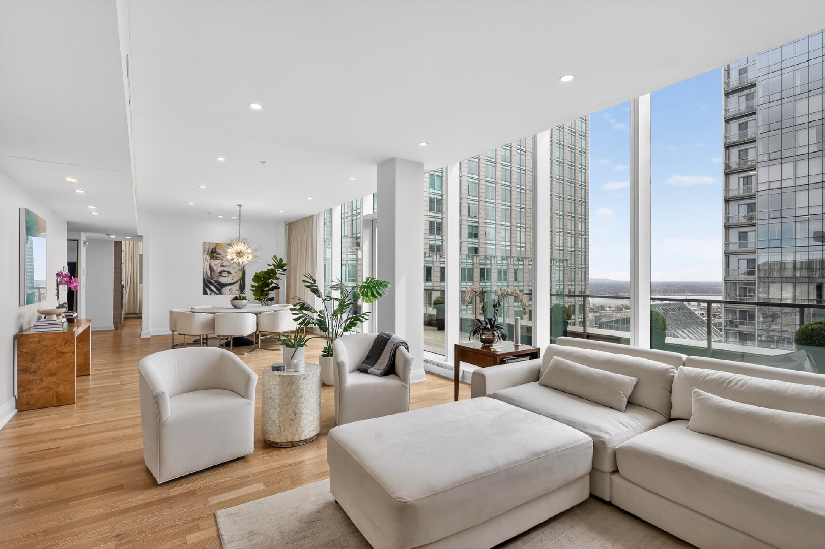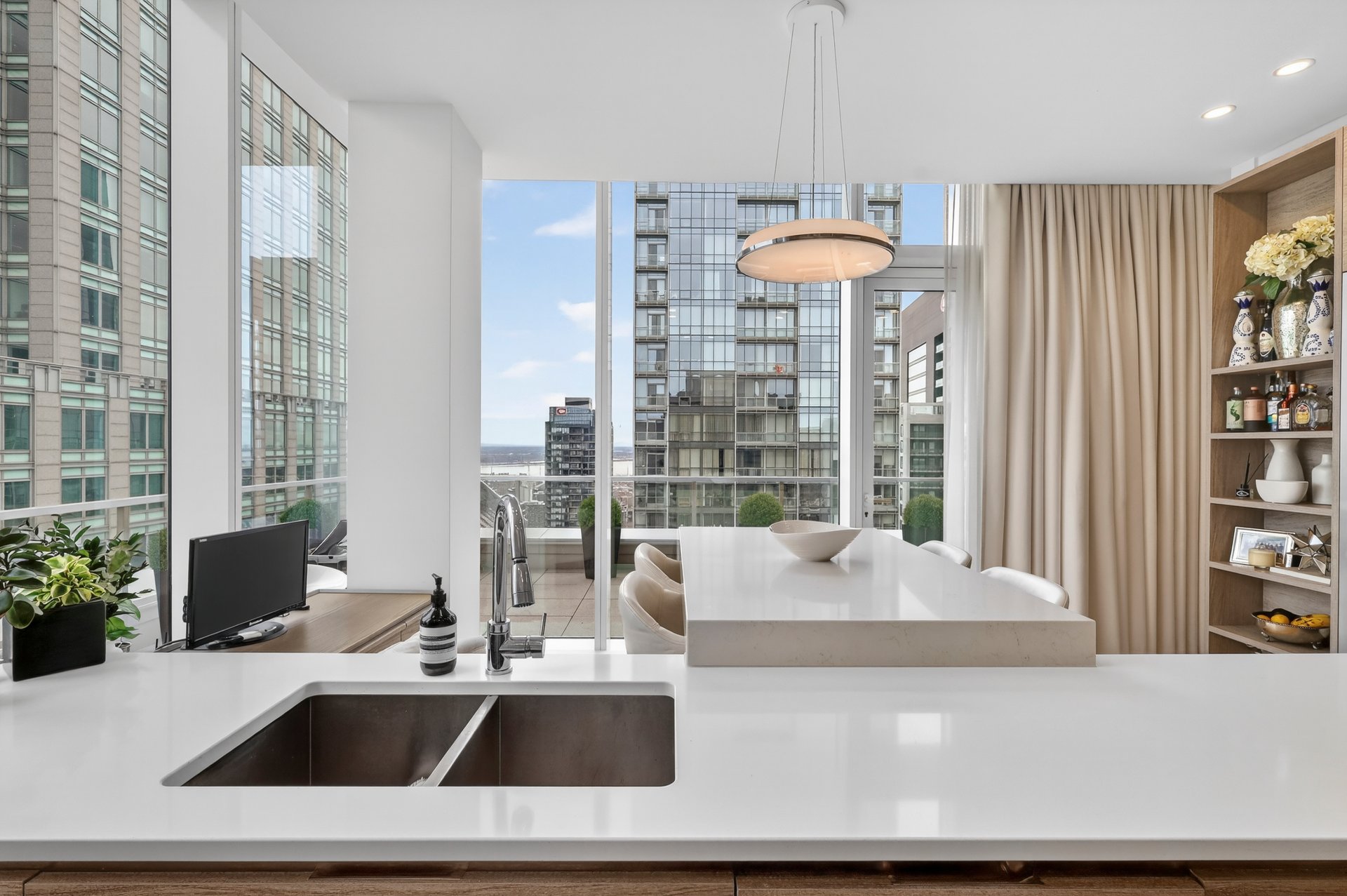Située au 40e étage du prestigieux Roccabella, cette résidence de type penthouse offre une expérience de vie urbaine exceptionnelle au coeur du centre-ville de Montréal. Bénéficiant d’un emplacement sur deux coins et d’une orientation sud, l’unité est baignée de lumière naturelle tout au long de la journée et propose des vues panoramiques spectaculaires sur le centre-ville et le fleuve.Dès l’entrée, les plafonds élevés et les vastes ouvertures vitrées mettent en valeur les volumes impressionnants de l’espace de vie. Le salon et la salle à manger s’intègrent harmonieusement dans une aire ouverte élégante, idéale pour recevoir ou profiter du panorama urbain.La cuisine contemporaine se distingue par ses lignes épurées, son vaste îlot central et son intégration naturelle aux espaces de vie, créant un environnement aussi fonctionnel que raffiné.La suite principale constitue un véritable espace privé avec un grand walk-in aménagé et une salle de bain attenante comprenant un bain et une douche séparée. Deux autres chambres complètent la propriété, dont une avec salle de bain attenante, offrant confort et intimité pour la famille ou les invités.L’unité comprend également une troisième salle de bain complète, une salle d’eau ainsi qu’une salle de lavage indépendante.À l’extérieur, une immense terrasse enveloppante accessible de plusieurs pièces permet de profiter pleinement des vues spectaculaires et du cadre urbain unique qu’offre cette propriété.La propriété est vendue avec trois espaces de garage ainsi qu’un espace de rangement.Le Roccabella est un immeuble de prestige offrant des services et installations de grande qualité:Portier et sécurité 24/7Piscine intérieureSauna secJacuzziSalle d’entraînement sur deux étagesTerrasse commune au 3e étage avec BBQ et espaces loungeStationnement pour visiteursIdéalement situé au coeur du centre-ville, à proximité des restaurants, commerces, transports en commun et de tous les services.Pièces