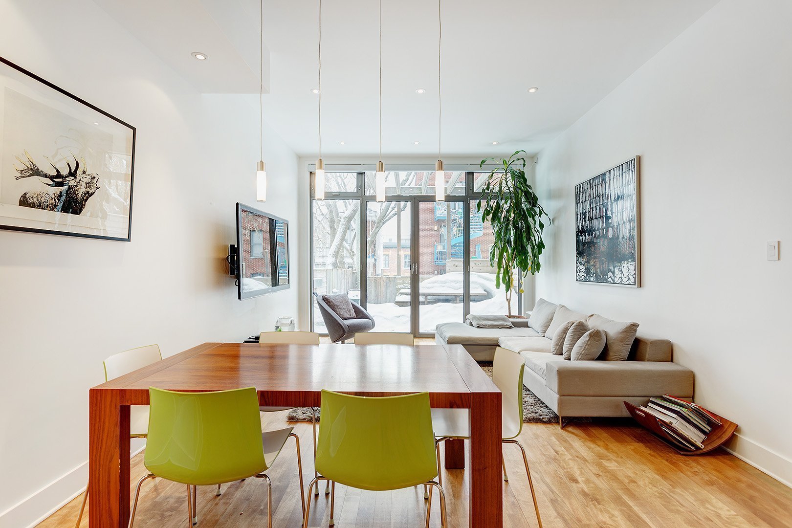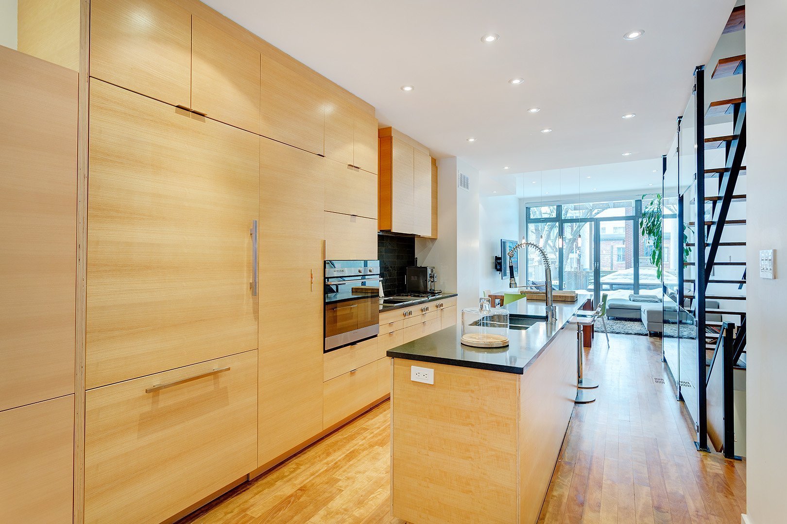 Cette magnifique propriété dans le coeur du Plateau Mont-Royal saura vous charmer dès votre entrée.RDC - Le hall d’entrée donnant sur la cuisine est revêtu d’un superbe plancher d’ardoise. Le visiteur se voit tout de suite accueilli à l’immense îlot de cuisine, l’endroit idéal pour recevoir famille et amis. La cuisine offre énormément d’espace de rangement, un dosseret en ardoise et de magnifiques comptoirs de granite noir. Les appareils haut de gamme sont encastrés pour un look des plus moderne. L’espace de vie du rez-de-chaussée est entièrement à aire ouverte. Le visiteur passe par la salle à manger pour se rendre au salon de très bonne dimension, où un mur de vitre pleine hauteur avec portes donne sur la première terrasse arrière – un vrai oasis urbain. Une salle d’eau complète à cet étage.2e ÉTAGE - Le visiteur emprunte un escalier aux sublimes éléments architecturaux de vitre, d’acier et de bois pour se rendre au deuxième étage. Cet étage est composé de deux chambres avec garde-robes, d’une salle de bain complète avec bain/douche séparés et d’une salle de lavage. La salle de bain est entièrement recouverte de céramique et offre une douche italienne avec mur de vitre.3e ÉTAGE - Une magnifique porte de vitre marque le début d’une chambre des maîtres à couper le souffle. Le troisième étage est divisé entre la chambre des maîtres et la salle de bain attenante avec douche. Un accès à la terrasee privée avant est dans la chambre, tandis qu’un accès à la terrasse arrière se trouve dans la salle de bain. Un endroit unique en son genre pour relaxer en plein coeur d’un quartier dynamique.SOUS-SOL - Un sous-sol entièrement emménagé complète cette propriété. Le sous-sol offre une immense salle familiale, un cellier et un bureau/ou chambre sans fenêtre.*** Nouvelle thermopompe et fournaise de juin 2025!Pièces