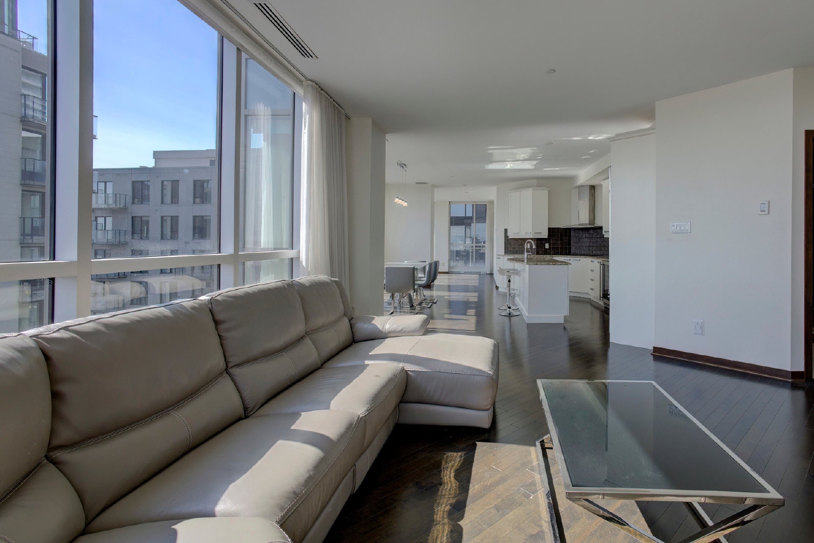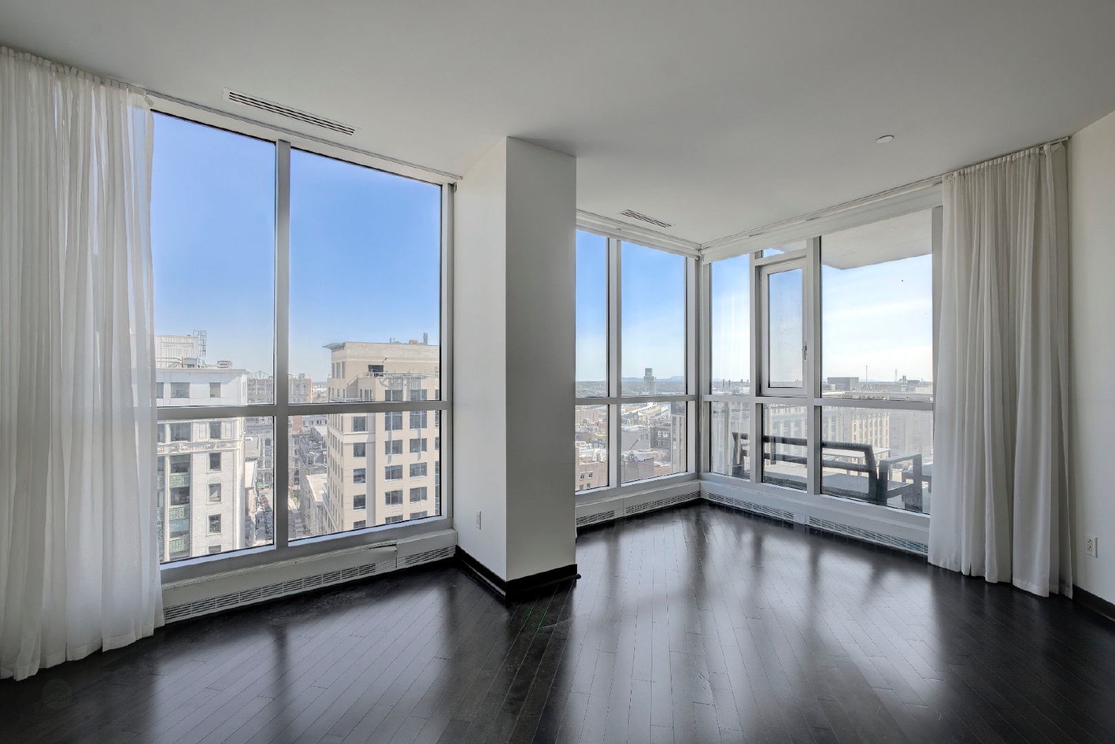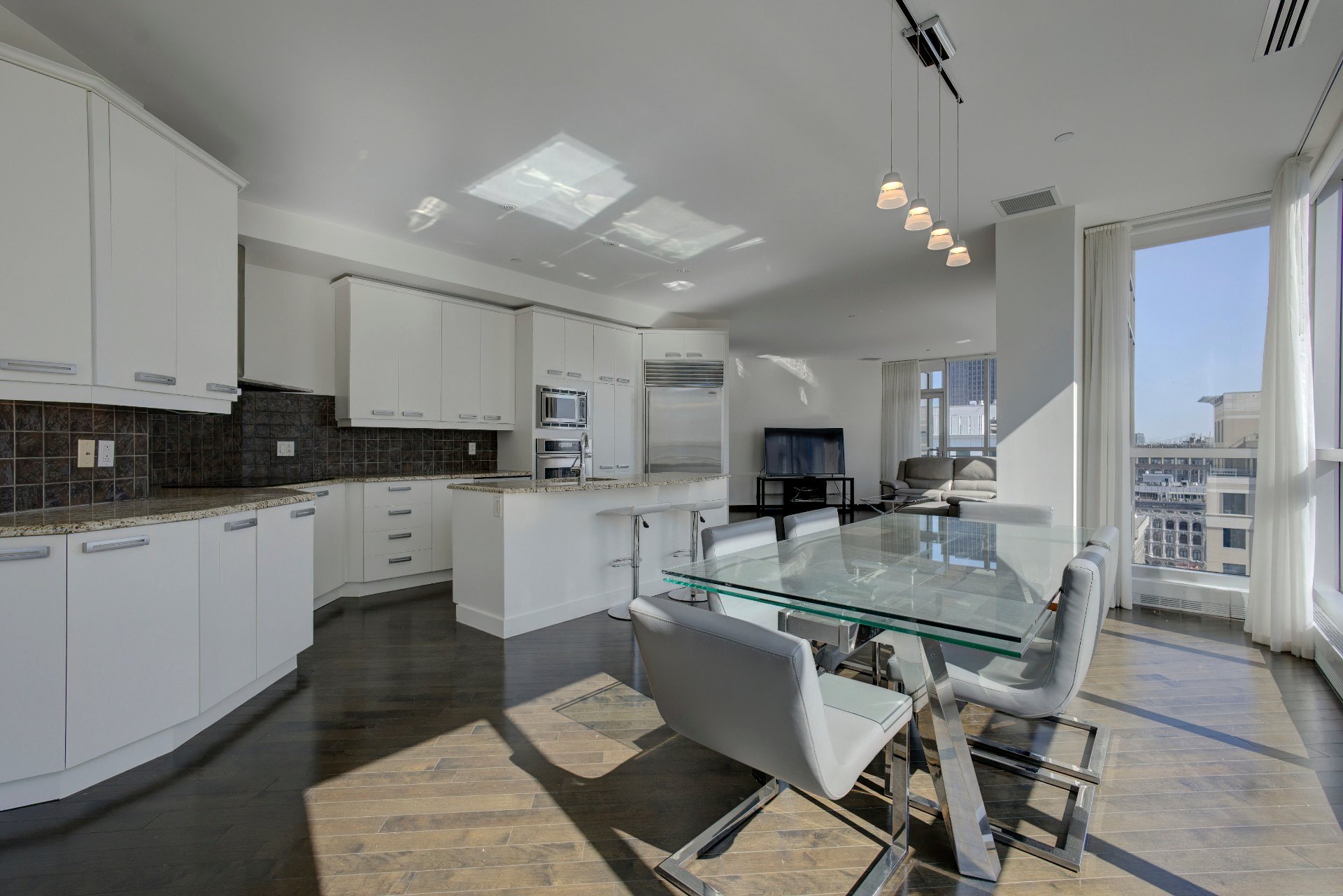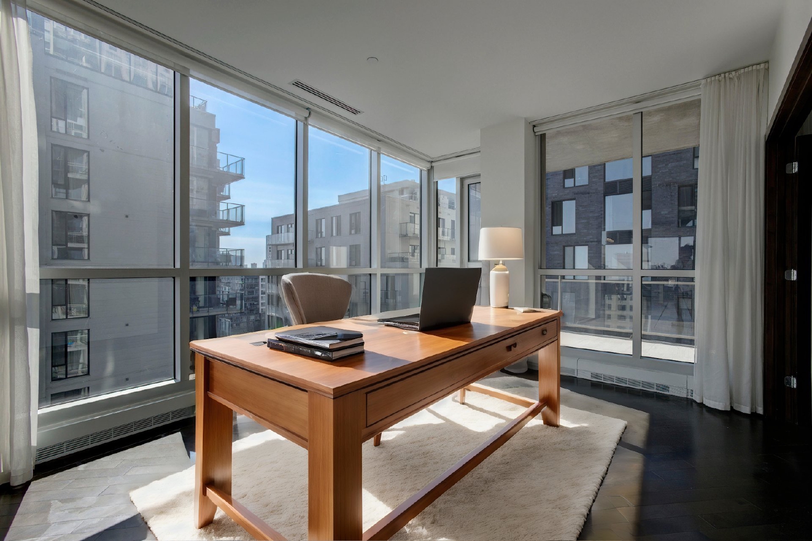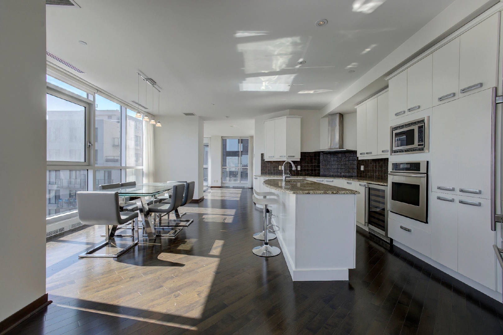 Découvrez le luxe à son apogée dans ce condo de 2 chambres et 2 salles de bain, situé au coeur du Quartier International de Montréal. En tant qu’unité de coin avec une vue panoramique à 180 degrés, ce bien rare est l’une des deux seules unités à l’étage, offrant une intimité et une tranquillité incomparables.Entrez dans un espace de vie vaste conçu pour le confort et l’élégance. Le grand salon s’ouvre sur une salle à manger spacieuse et sur la cuisine, idéale pour recevoir ou pour des soirées tranquilles à la maison. Un bureau ouvert polyvalent complète l’espace, parfait pour ceux qui travaillent à domicile ou ont besoin d’un espace pour leurs loisirs.Les fenêtres surdimensionnées inondent le condo de lumière naturelle. Les deux grands balcons offrent des vues dégagées sur le Vieux-Port historique et le magnifique fleuve Saint-Laurent. Avec une luminosité maximale tout au long de l’année, ce condo est lumineux et aéré.Les résidents de cet immeuble établi et bien entretenu bénéficient d’une salle de sport et d’une piscine, parfaites pour maintenir un mode de vie actif sans quitter le confort de chez soi. La réputation établie de la clientèle fidèle de l’immeuble assure un environnement de vie paisible et sécurisé.Situé dans l’un des quartiers les plus recherchés de la ville, ce condo offre le parfait mélange de vie urbaine et de charme historique. À la croisée du centre-ville et du Vieux-Montréal, vous serez à quelques pas de restaurants de classe mondiale, de boutiques charmantes, et d’une variété d’activités culturelles et récréatives. Que vous exploriez les rues vibrantes du centre-ville ou profitiez de la beauté pittoresque du Vieux-Port, cet emplacement offre le meilleur des deux mondes.Pièces