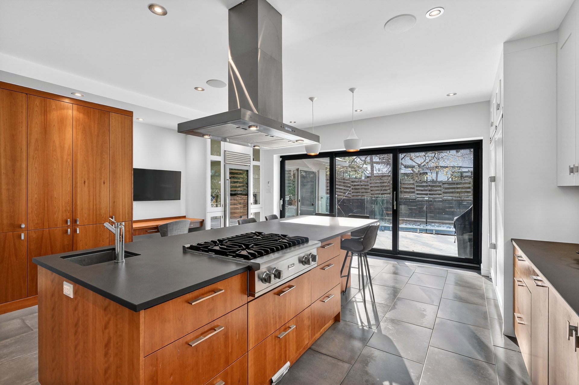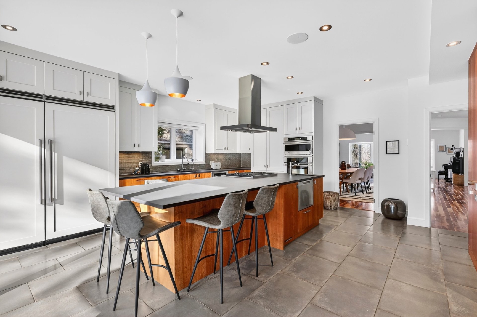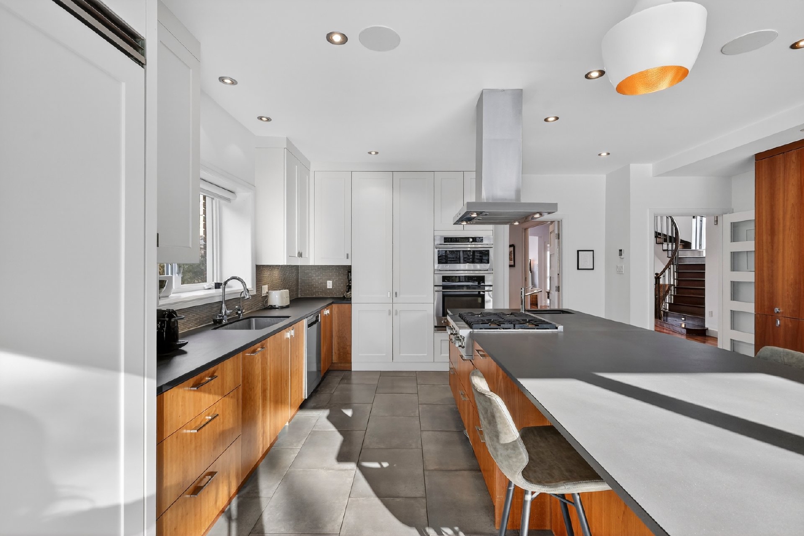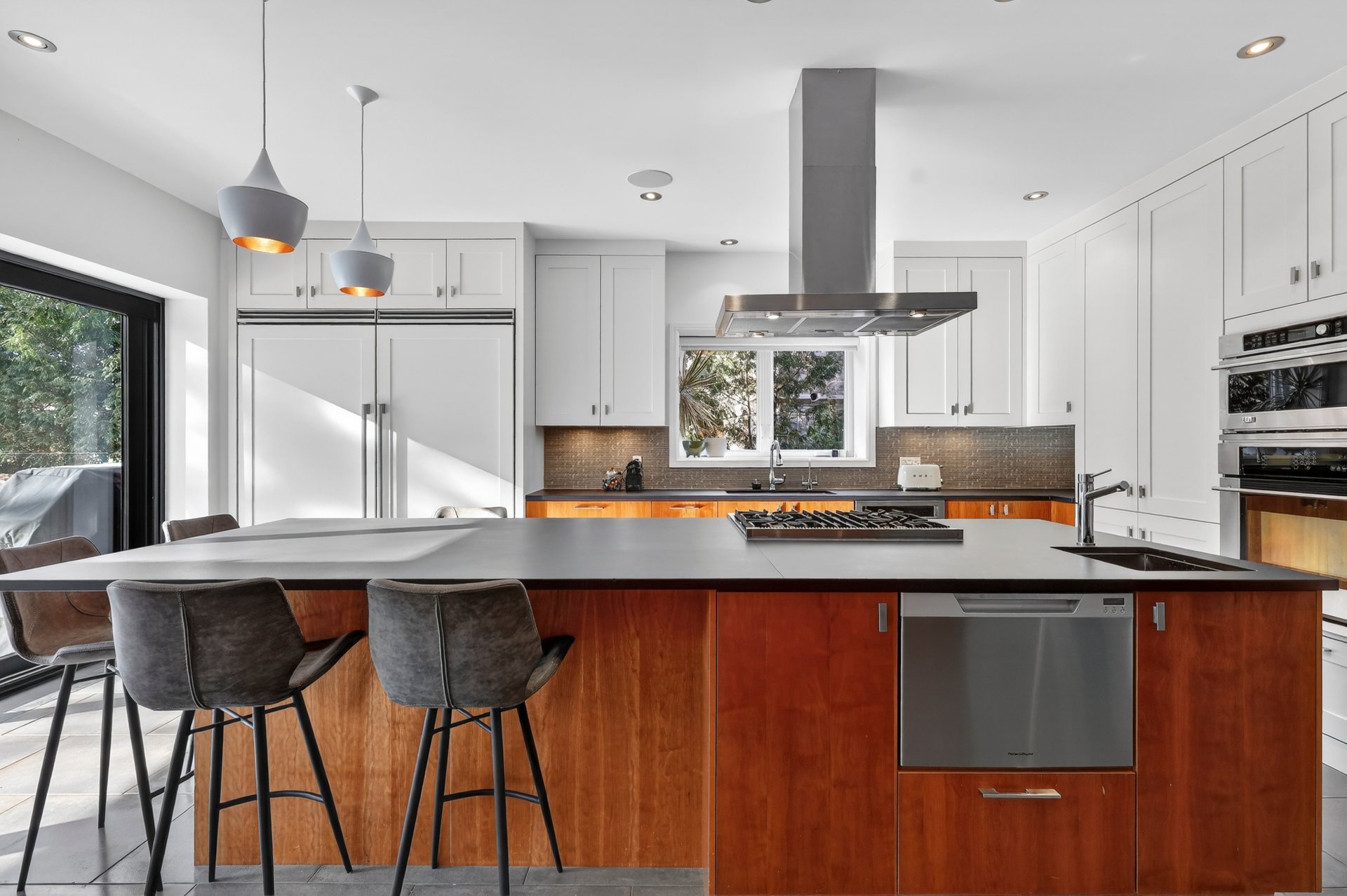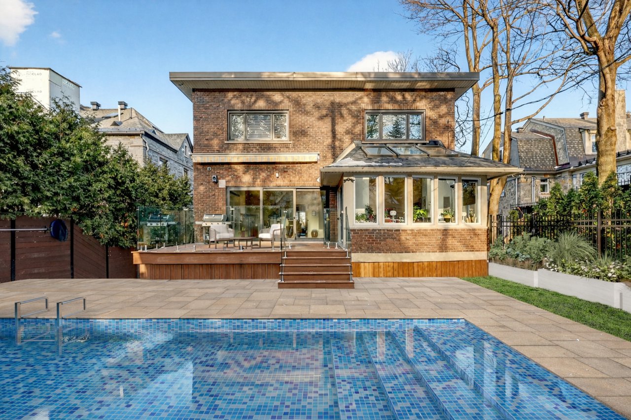 Dès l’entrée, le rez-de-chaussée impressionne par un vestibule en céramique menant à un vaste hall aux volumes remarquables, parfait pour les grandes réceptions. Le plan en enfilade, ponctué de larges ouvertures, offre une circulation naturelle et une sensation d’espace constante.À l’arrière, la cuisine s’impose comme le coeur de la maison. Baignée de lumière grâce à une immense porte-patio donnant sur la cour, elle propose un îlot central, une cuisinière au gaz, deux lave-vaisselles, un second évier bar, un cellier, des réfrigérateur et congélateur intégrés, un four encastré et une abondance de rangement. Les lignes sont modernes, épurées et intemporelles.Le premier salon, situé à l’avant, bénéficie d’une généreuse baie vitrée avec vue directe sur le parc Pratt et d’un foyer au gaz, créant un espace chaleureux et élégant. La salle à manger, accessible par trois points d’entrée et munie de portes coulissantes, s’intègre parfaitement aux espaces de vie.Adjacent à la cuisine, un séjour familial polyvalent s’ouvre sur une véranda lumineuse munie de lanterneaux. Cet espace, lumineux et tourné vers l’extérieur, est idéal comme salle de lecture, bureau ou salle familiale, avec accès direct à la cour. Une salle d’eau complète cet étage.La cour arrière, orientée sud-ouest, a été soigneusement aménagée: deck neuf, clôtures vitrées minimisant l’obstruction visuelle, piscine creusée et chauffée, nouveau pavé uni, système d’irrigation et améliorations notables du drainage pour une tranquillité d’esprit durable.Un escalier architectural aux courbes élégantes et plafond double hauteur de plus de 18 pieds mène au deuxième étage. À l’avant, la suite principale de plus de 515 pi² offre une vue apaisante sur les arbres et le parc, un walk-in bien organisé et une salle de bain attenante. Trois autres chambres de très bonnes dimensions avec garde-robes complètent l’étage, ainsi qu’une salle de bain complète intégrant laveuse et sécheuse.Le sous-sol, entièrement aménagé, comprend une vaste salle familiale, deux chambres supplémentaires, une troisième salle de bain, une seconde salle de lavage, beaucoup de rangement et un accès direct au garage double.À travers la propriété, on retrouve un design contemporain cohérent, des planchers de noyer américain, une thermopompe centrale assurant un confort optimal et, surtout, une luminosité exceptionnelle dans toutes les pièces.Face au parc Pratt, reconnu pour ses deux étangs, ses sentiers et sa patinoire hivernale.Parc Joyce: ~200 mPensionnat Saint-Nom-de-Marie: ~600 mÉcole Saint-Germain-d’Outremont: ~700 mMétro Édouard-Montpetit: ~750 mParc Beaubien: ~800 mAvenue Bernard (cafés, commerces, services): ~800 mCollège Stanislas: ~800 mPaul Gérin Lajoie d’Outremont: ~1400 mCollège Jean-de-Brébeuf: ~1600 mLa superficie au sol et la superficie brute habitable de 5 500 pi² (incluant le s.-s.) ont été établies à partir d’estimations basées sur le certificat de localisation.Pièces
