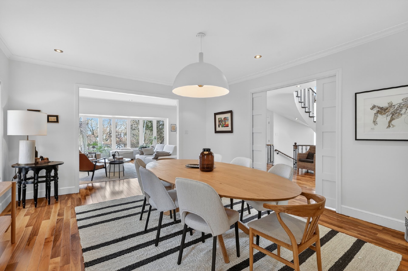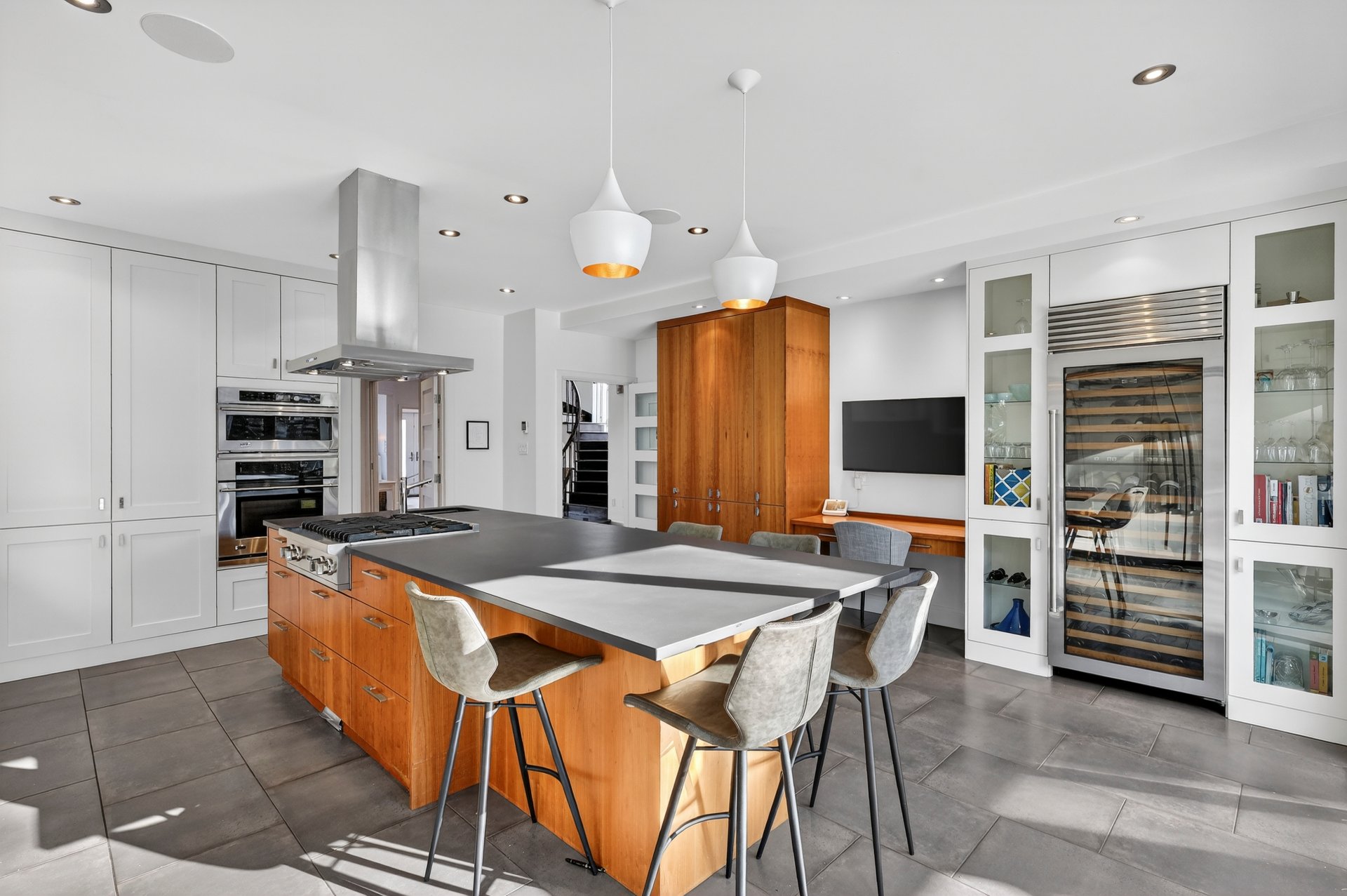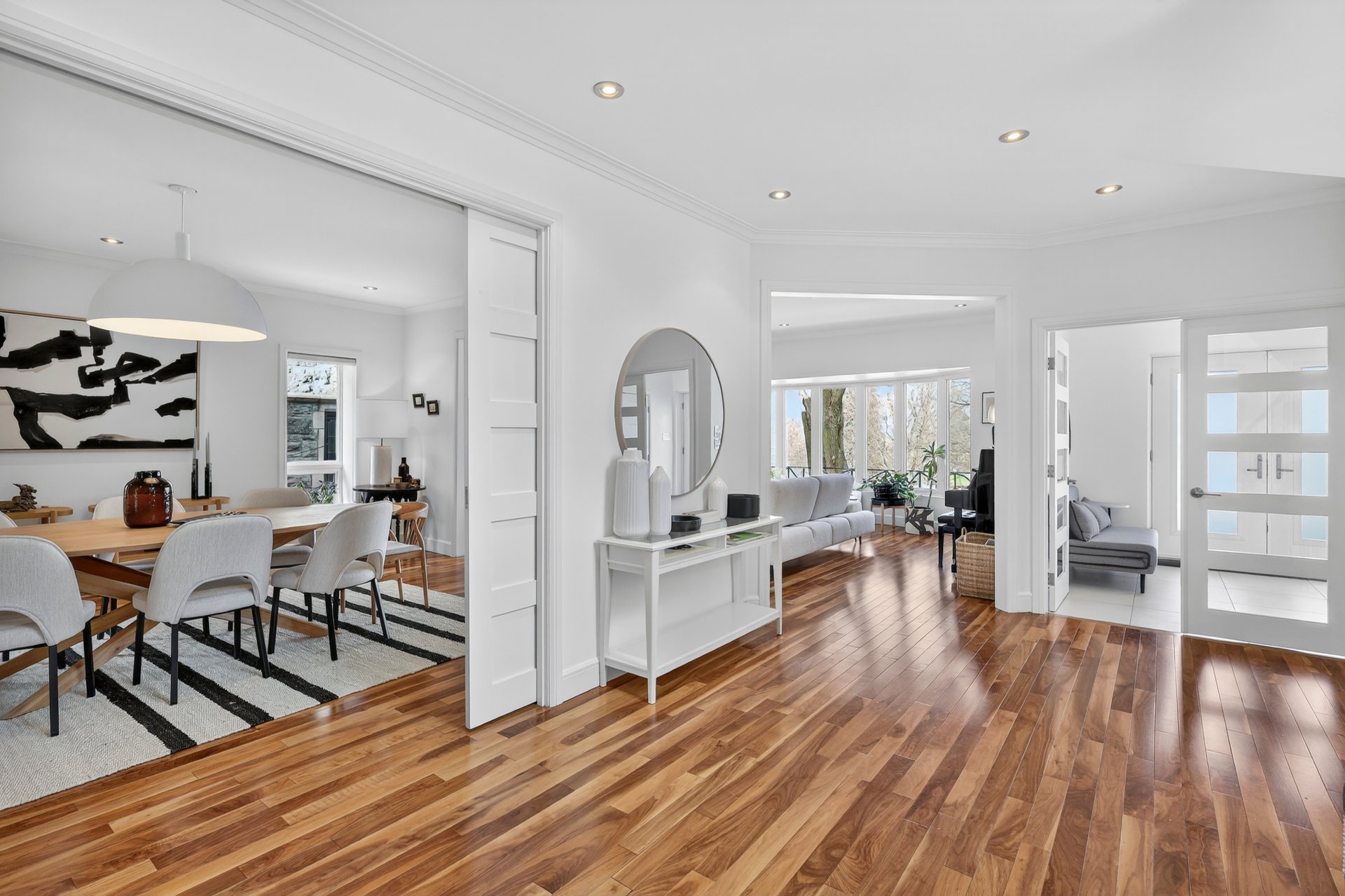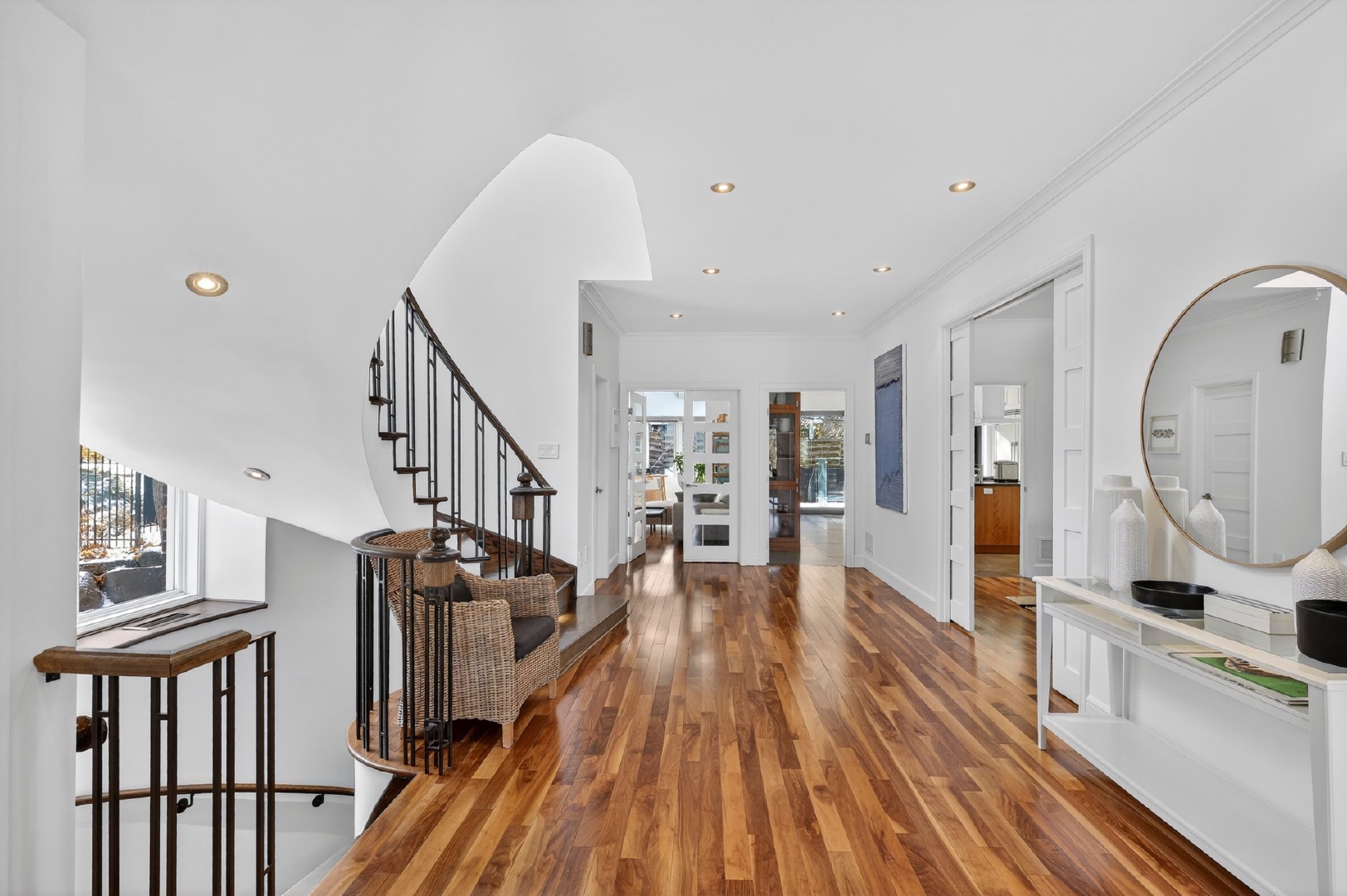 Dès l’entrée, le rez-de-chaussée impressionne par un vestibule en céramique menant à un vaste hall aux volumes remarquables, parfait pour les grandes réceptions. Le plan en enfilade, ponctué de larges ouvertures, offre une circulation naturelle et une sensation d’espace constante.À l’arrière, la cuisine s’impose comme le coeur de la maison. Baignée de lumière grâce à une immense porte-patio donnant sur la cour, elle propose un îlot central, une cuisinière au gaz, deux lave-vaisselles, un second évier bar, un cellier, des réfrigérateur et congélateur intégrés, un four encastré et une abondance de rangement. Les lignes sont modernes, épurées et intemporelles.Le premier salon, situé à l’avant, bénéficie d’une généreuse baie vitrée avec vue directe sur le parc Pratt et d’un foyer au gaz, créant un espace chaleureux et élégant. La salle à manger, accessible par trois points d’entrée et munie de portes coulissantes, s’intègre parfaitement aux espaces de vie.Adjacent à la cuisine, un séjour familial polyvalent s’ouvre sur une véranda lumineuse munie de lanterneaux. Cet espace, lumineux et tourné vers l’extérieur, est idéal comme salle de lecture, bureau ou salle familiale, avec accès direct à la cour. Une salle d’eau complète cet étage.La cour arrière, orientée sud-ouest, a été soigneusement aménagée: deck neuf, clôtures vitrées minimisant l’obstruction visuelle, piscine creusée et chauffée, nouveau pavé uni, système d’irrigation et améliorations notables du drainage pour une tranquillité d’esprit durable.Un escalier architectural aux courbes élégantes et plafond double hauteur de plus de 18 pieds mène au deuxième étage. À l’avant, la suite principale de plus de 515 pi² offre une vue apaisante sur les arbres et le parc, un walk-in bien organisé et une salle de bain attenante. Trois autres chambres de très bonnes dimensions avec garde-robes complètent l’étage, ainsi qu’une salle de bain complète intégrant laveuse et sécheuse.Le sous-sol, entièrement aménagé, comprend une vaste salle familiale, deux chambres supplémentaires, une troisième salle de bain, une seconde salle de lavage, beaucoup de rangement et un accès direct au garage double.À travers la propriété, on retrouve un design contemporain cohérent, des planchers de noyer américain, une thermopompe centrale assurant un confort optimal et, surtout, une luminosité exceptionnelle dans toutes les pièces.Face au parc Pratt, reconnu pour ses deux étangs, ses sentiers et sa patinoire hivernale.Parc Joyce: ~200 mPensionnat Saint-Nom-de-Marie: ~600 mÉcole Saint-Germain-d’Outremont: ~700 mMétro Édouard-Montpetit: ~750 mParc Beaubien: ~800 mAvenue Bernard (cafés, commerces, services): ~800 mCollège Stanislas: ~800 mPaul Gérin Lajoie d’Outremont: ~1400 mCollège Jean-de-Brébeuf: ~1600 mLa superficie au sol et la superficie brute habitable de 5 500 pi² (incluant le s.-s.) ont été établies à partir d’estimations basées sur le certificat de localisation.Pièces